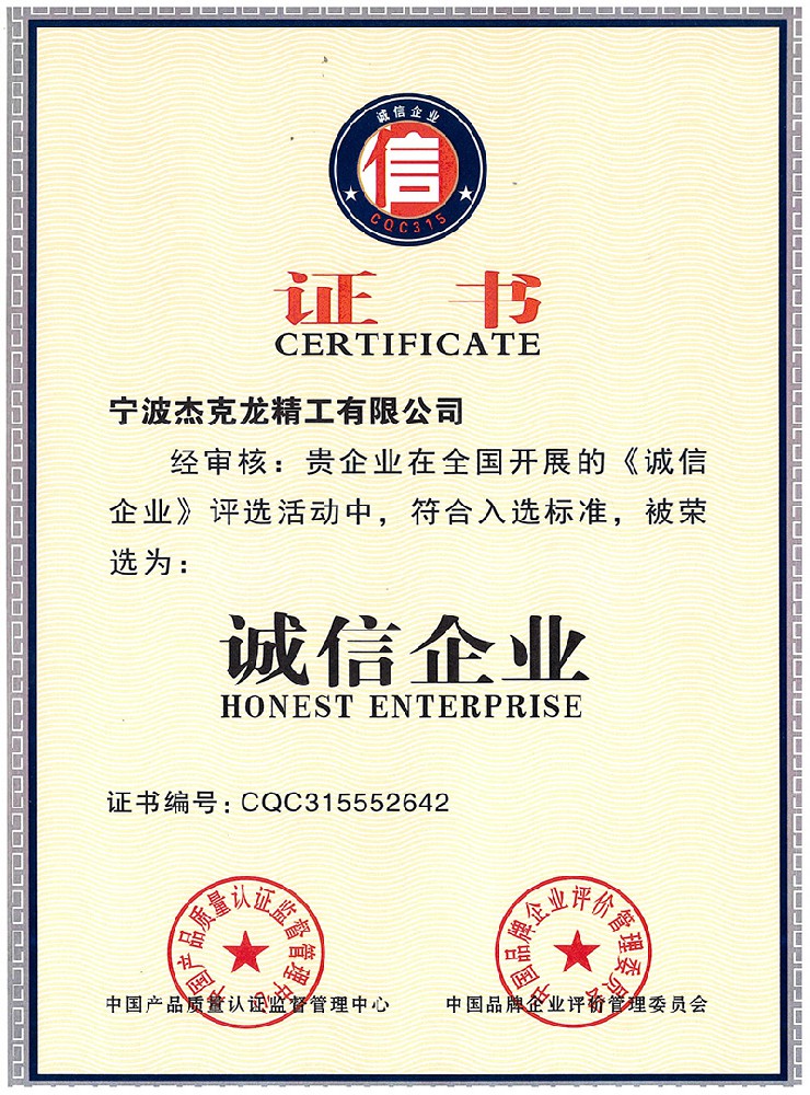 杰克龍精工先后通過了ISO9001、ISO14001和ISO45001三大管理體系認證,杰克龍精工被認定為“高新技術企業(yè)”。
